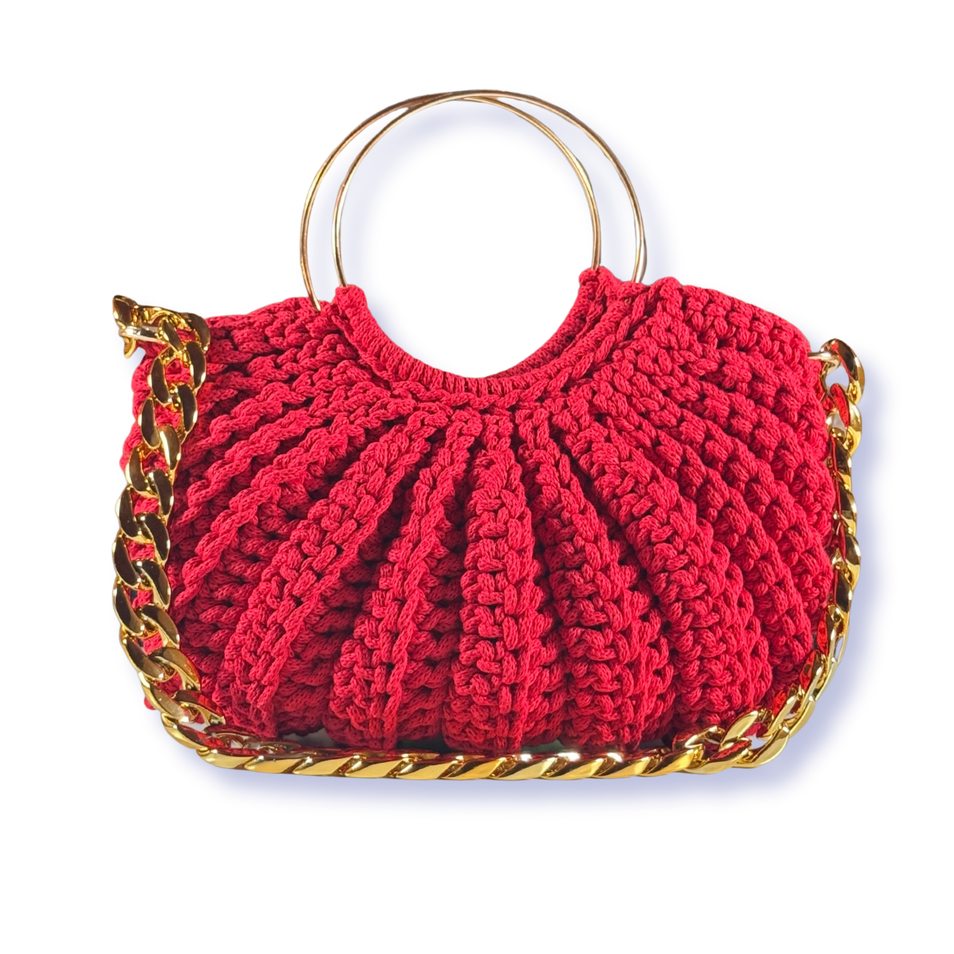 La nostra Borsa Diana è un modello raffinato e scenografico, caratterizzato dalla sua particolare forma a conchiglia che le conferisce movimento e raffinatezza. I manici tondi in metallo la rendono pratica da portare a mano, mentre la tracolla in catena aggiunge un tocco moderno e grintoso.